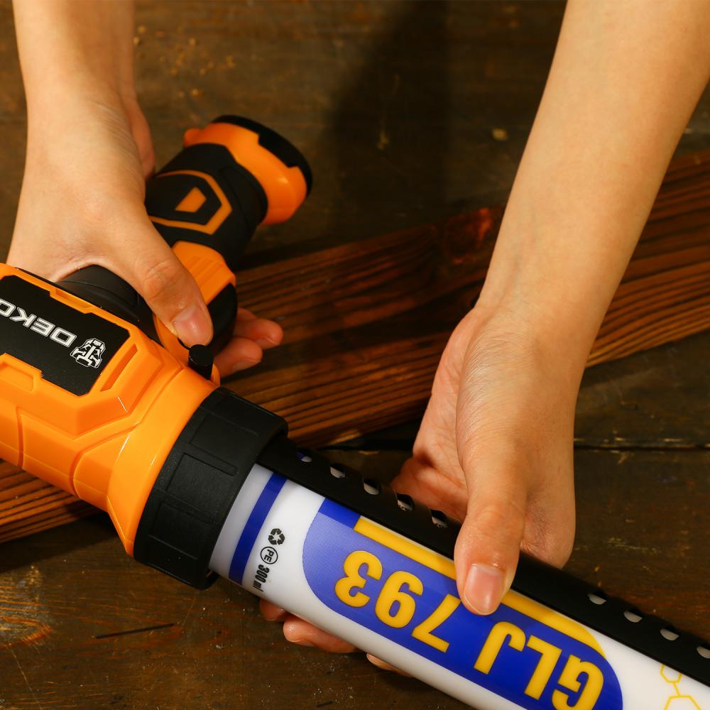 - Пистолет для герметика и клея DEKO DKGG подходит для выполнения строительных и монтажных работ.