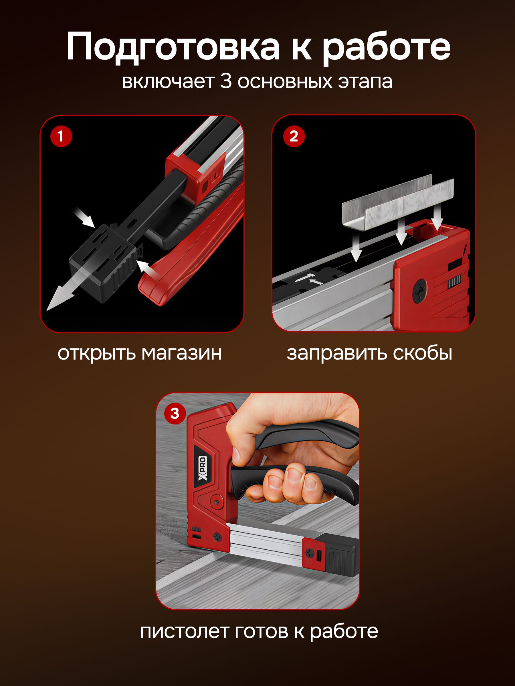 Пистолет для скоб и гвоздей ручной усиленный, 3 в 1 для скоб тип 140 (шир. 11,2 мм и 10,6 мм, толщ.1.2мм) и гвоздей (шир. 2 мм, толщ.1,2мм) XPRO XR-74102
