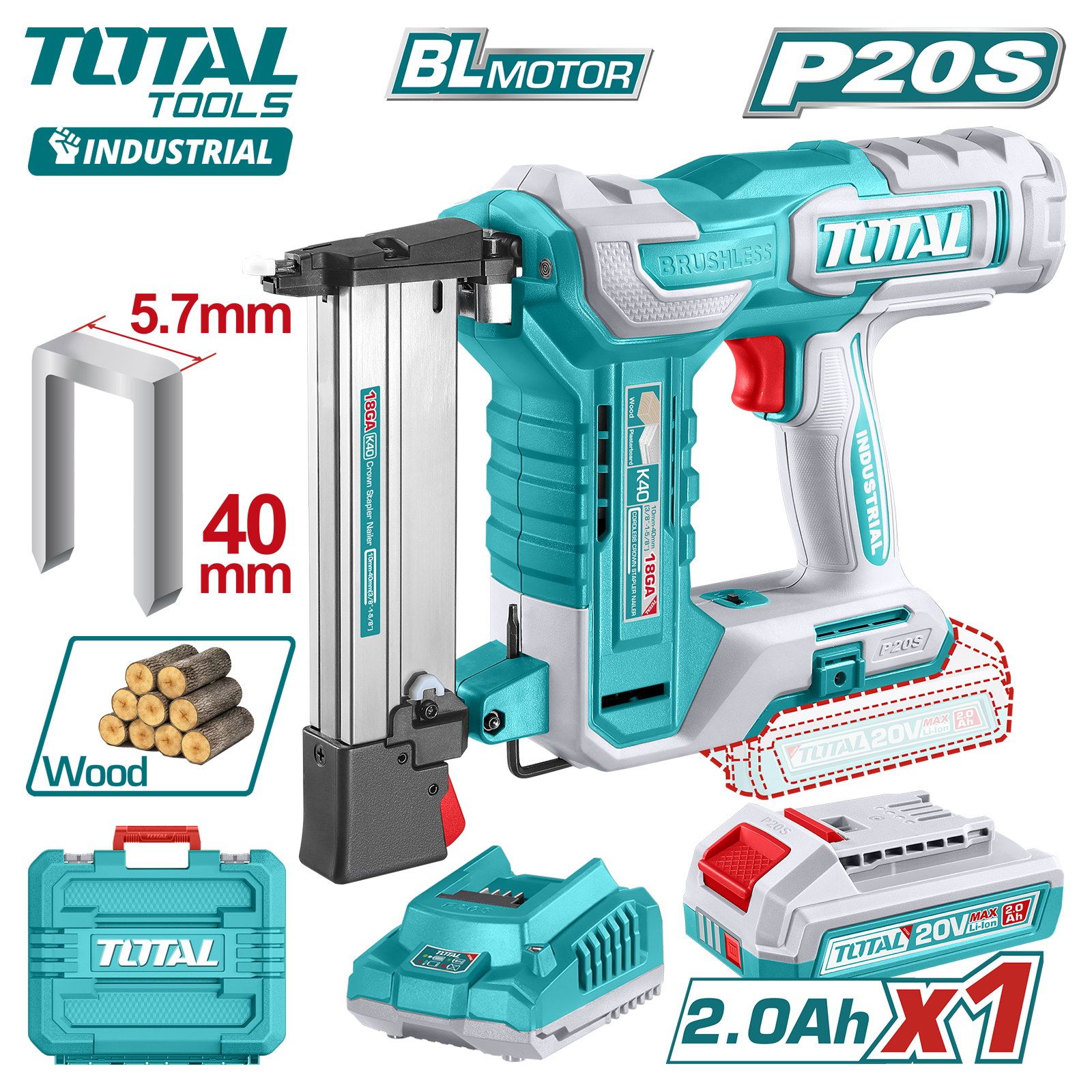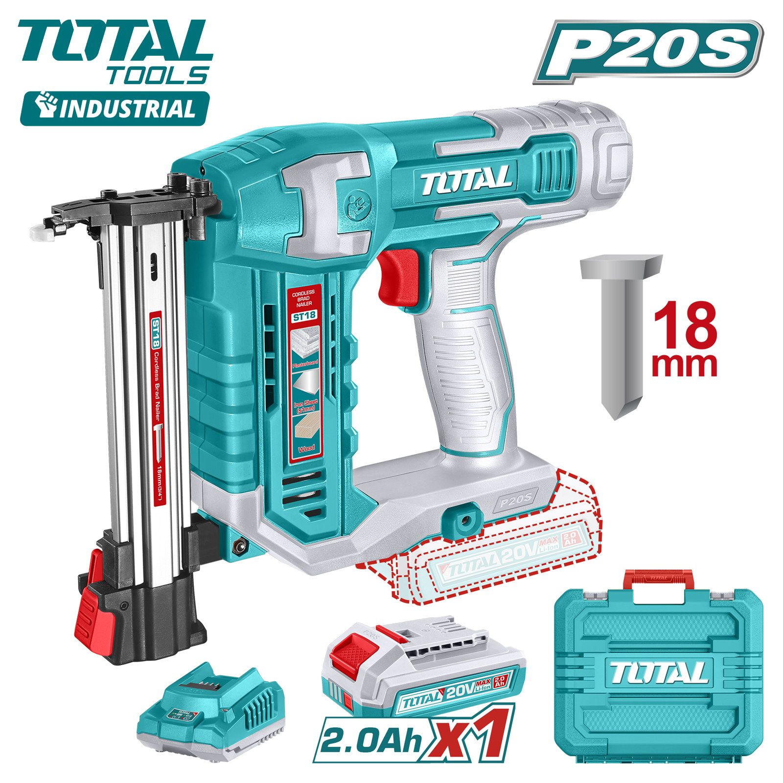 Пистолет гвоздезабивной аккумуляторный TOTAL TCSNLI6008