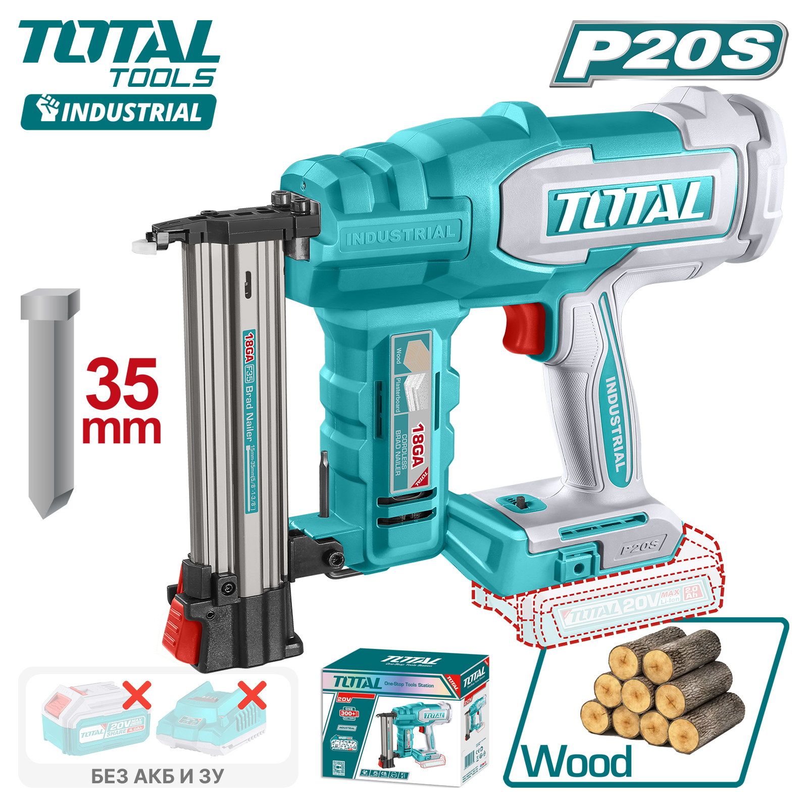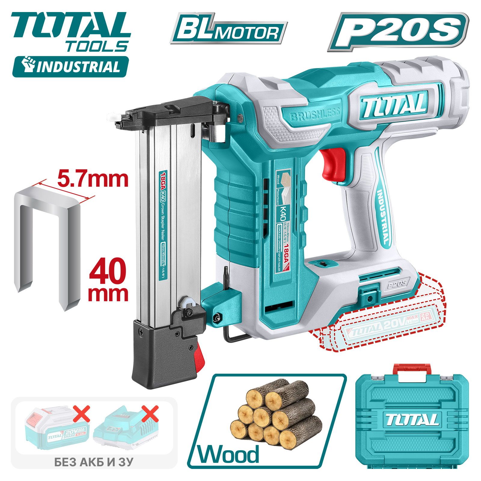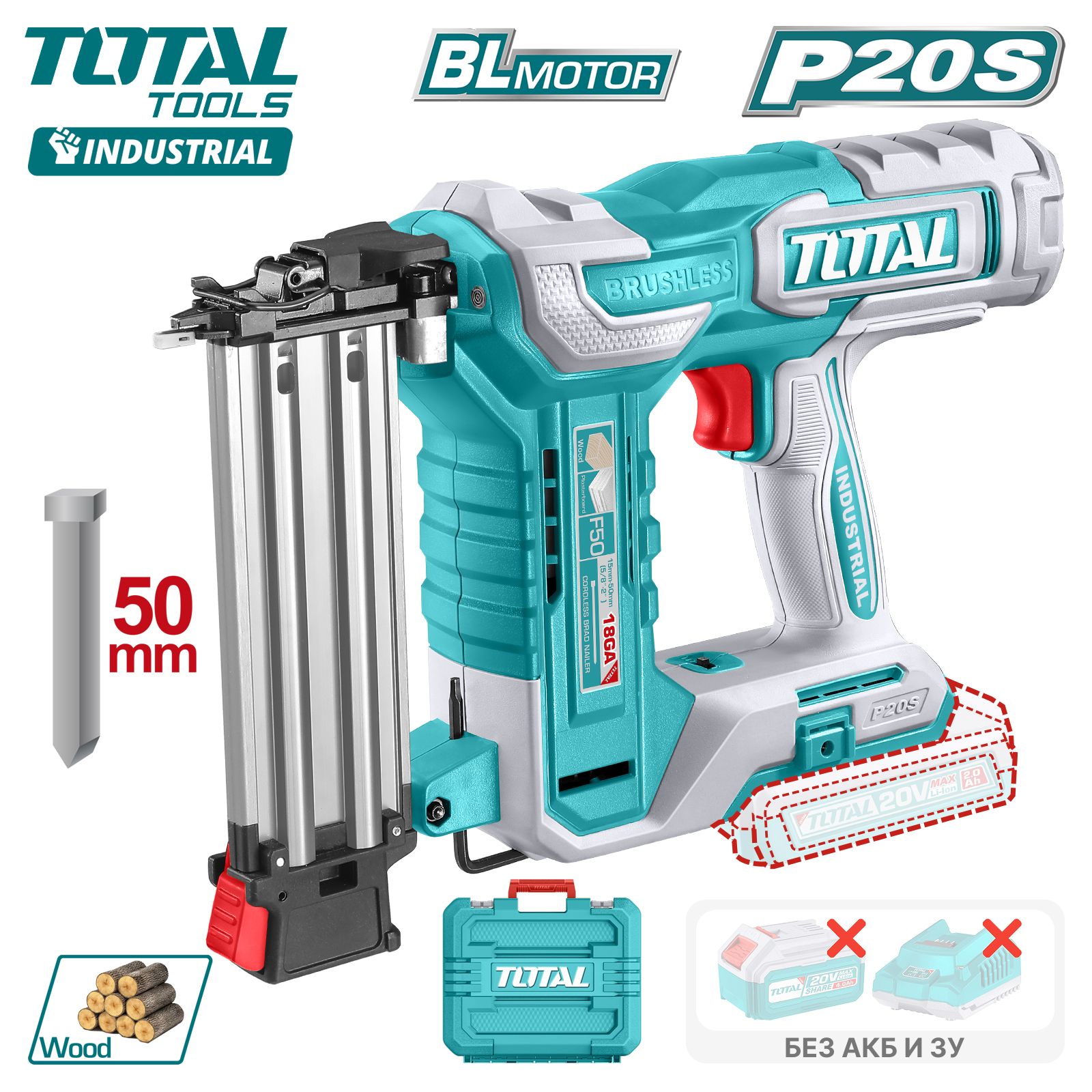 Пистолет гвоздезабивной аккумуляторный TOTAL TCSTLI3808
