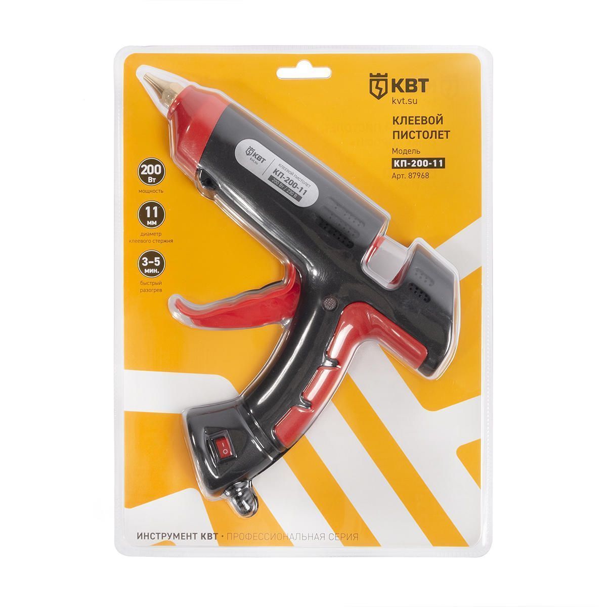 Пистолет клеевой 200 Вт с диаметром стержня 11 мм КП-200-11 серия ПРОФИ (КВТ) КВТ 87968