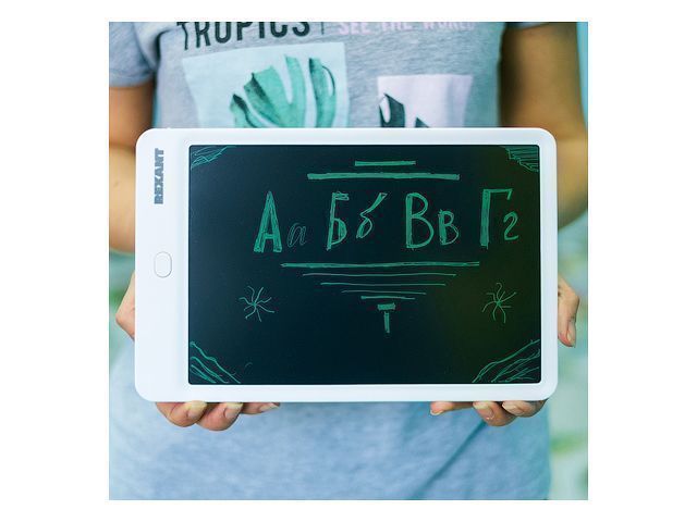 Графический планшет для рисования со стилусом. Планшет RexantR 10&& дюймов предназначен для фиксирования заметок и создания графических простейших рисунков. Он избавит от необходимости держать под рукой блокноты, бумагу для записей, переводить кучу бумаги на временные записи и покупать бесконечно альбомы для детских зарисовок, данный планшет поддерживает рисование стилусом и пальцем. Данный планшет обладает функцией защиты от стирания.Основное использование данного вида планшета: Детский планшет для рисования Планшет для заметок Доска для рекламы Доска для обучения ФЛИПЧАРТИзготовлен из прочного пластика.Планшет работает от батарейки "таблетка" CR2025 с напряжением 3 Вольта.Размер планшета: 166х255х9,5 mm