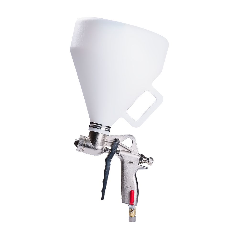 - Пистолет текстурный Fubag DECOR G5000 предназначен для нанесения декоративной штукатурки, штукатурки, различных жидких строительных смесей, имеющих включения крошки до 5 мм, некоторых видов жидких обоев.