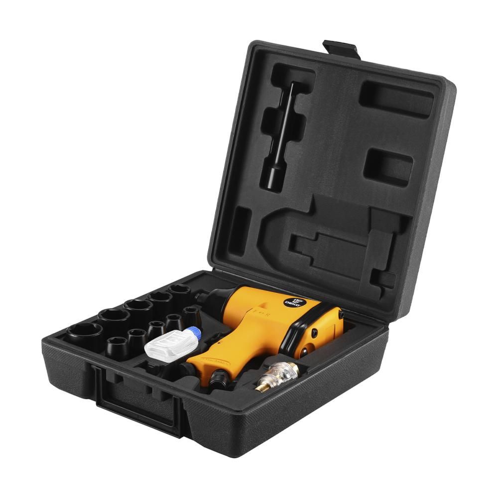 - Гайковерт пневматический ударный DEKO DKPT01 SET 3 в чемодане с набором 16 предметов.
