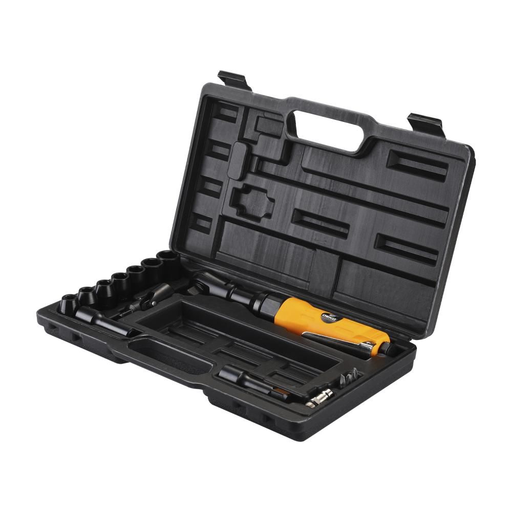 - Пневматическая трещотка DEKO DKPT03 SET 3 в чемодане с набором 15 предметов.