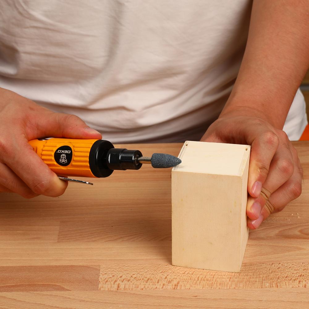 - Пневматическая шлифмашина DEKO DKPT02 SET 3 в чемодане с набором 15 предметов.