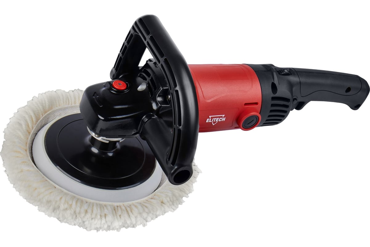 Главное достоинство специализированного инструмента — пониженные за счет редуктора (а не электроники) обороты шпинделя, чтобы не прижечь обрабатываемую поверхность. У Elitech МП 1418Э частота вращения оснастки регулируется удобным колесом, доступным для большого пальца управляющей руки непосредственно в процессе работы, от 690 до 3800 оборотов в минуту. Регулятор размечен в условных цифрах от 1 до 6.