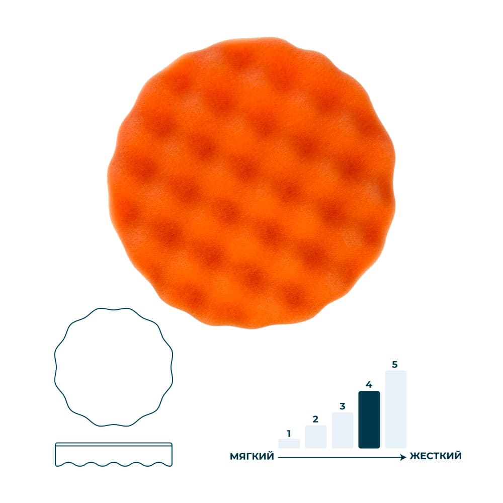 Полировальный круг ГАММАТЕСТ GTK4062 — оранжевый поролоновый круг диаметром 150 мм с креплением Velcro, предназначенный для удаления дефектов поверхности, подготовки ЛКП и придания блеска при работе с коррекционными и финишными пастами.