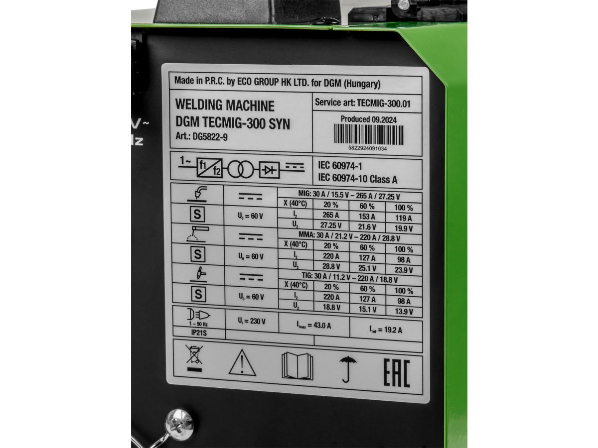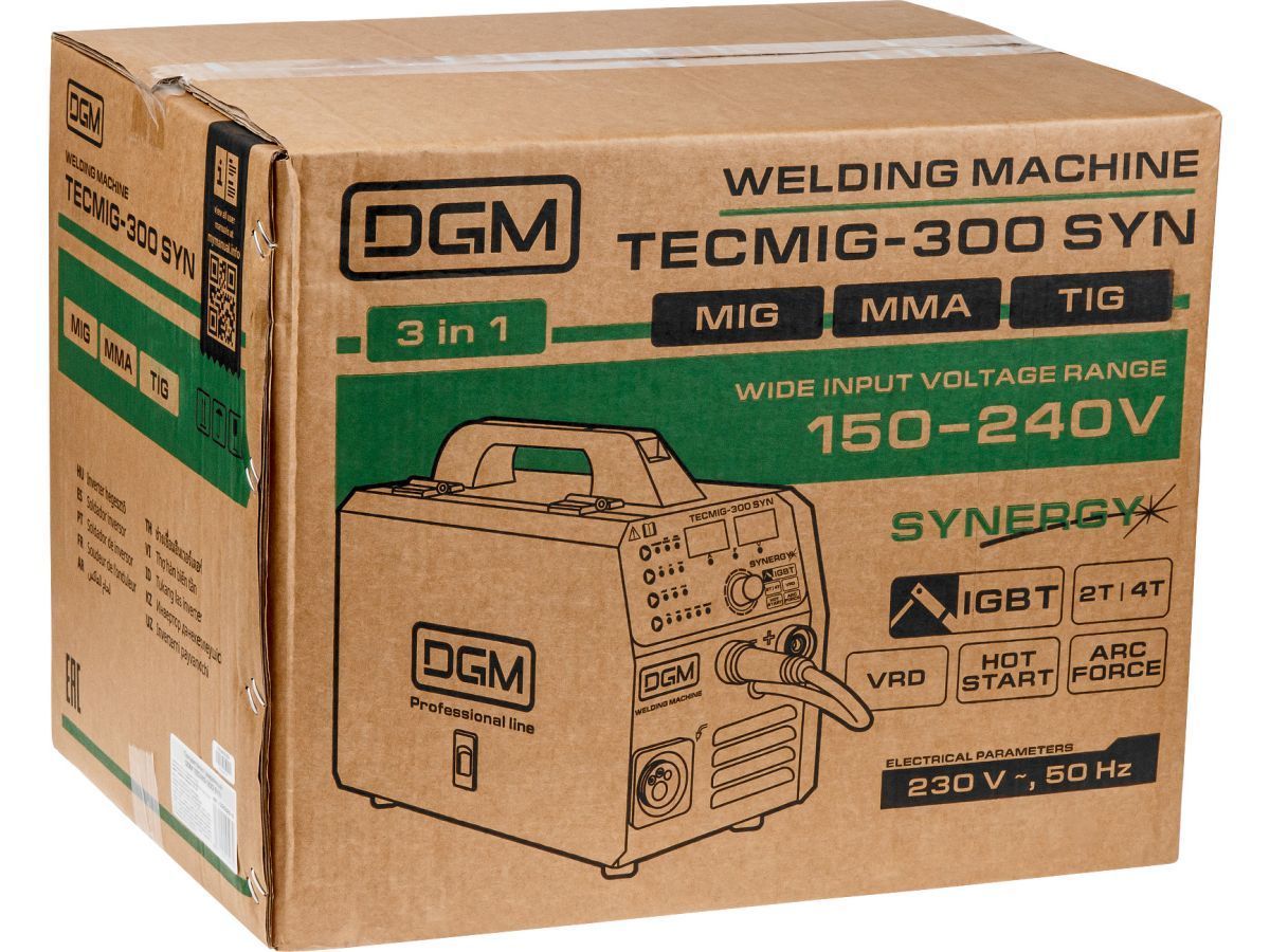 Полуавтомат сварочный TECMIG-300 SYN (220В, MIG/FLUX/MMA/TIG, Синергия, евроразъем, смена полярности) DGM DG5822-9