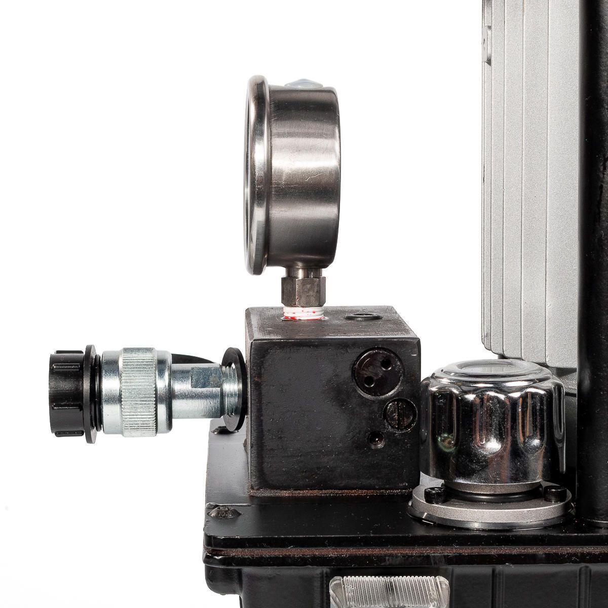 Благодаря двухступенчатому насосу с производительностью 2.8 л/мин (I ступень) и 0.5 л/мин (II ступень), устройство обеспечивает как быстрый старт, так и точную подачу давления при высоких нагрузках. Электропривод мощностью 0.75 кВт работает от сети 380 В, что делает модель особенно эффективной для промышленных объектов.