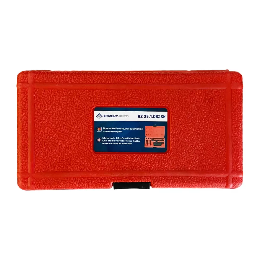 Приспособление для расклепки‑заклепки цепи Хорекс Авто HZ 25.1.062SK — ручной набор для аккуратного расклёпывания и последующей заклёпки звеньев моторных и приводных цепей, разработанный для применения в автосервисах и у частных мастеров при ремонте мотоциклов, скутеров и небольших двигателей.