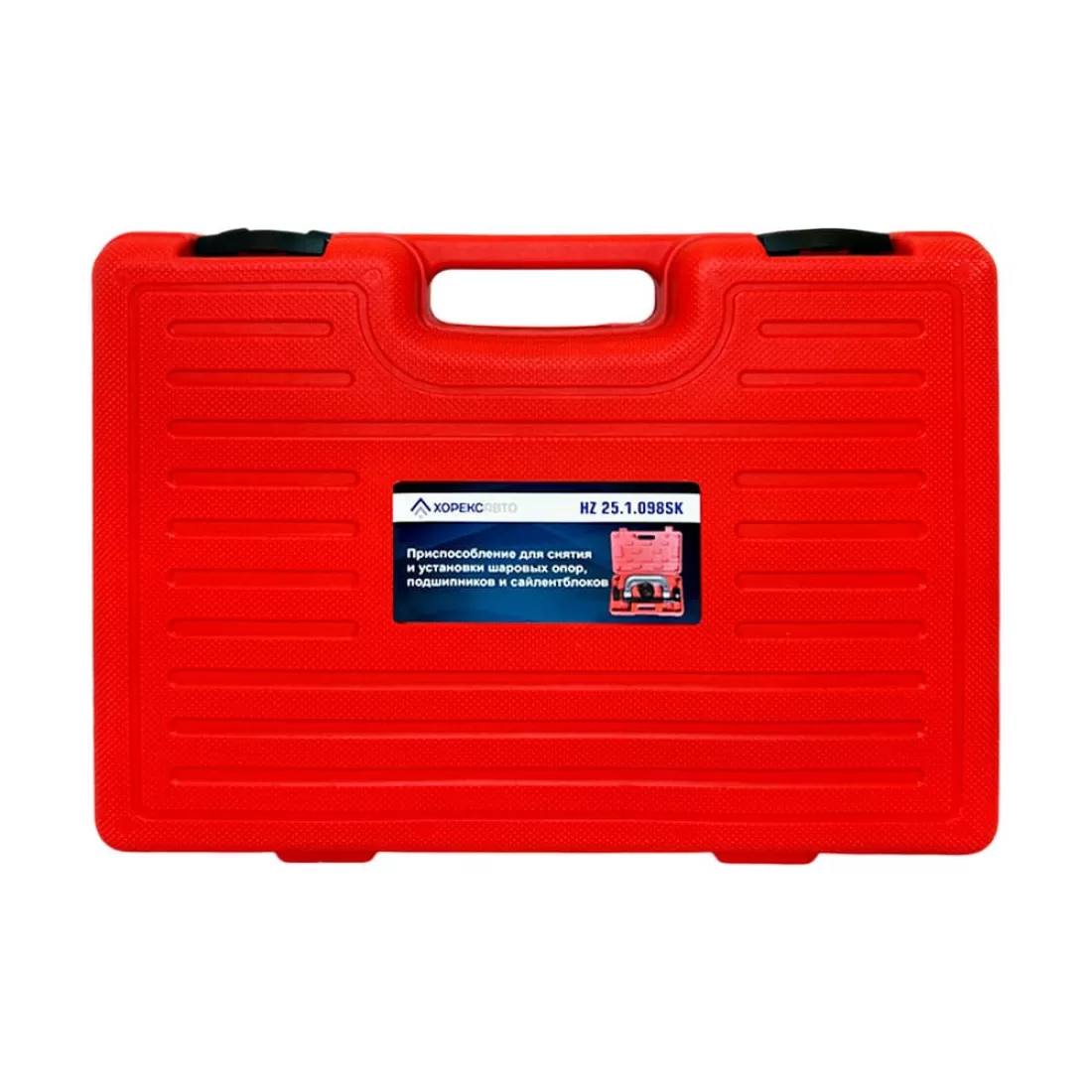 Приспособление для снятия и установки шаровых опор, подшипников и сайлентблоков Хорекс Авто HZ 25.1.098SK — универсальный набор для аккуратного демонтажа и запрессовки шаровых опор, ступичных подшипников и сайлентблоков в автосервисах и гаражных мастерских.