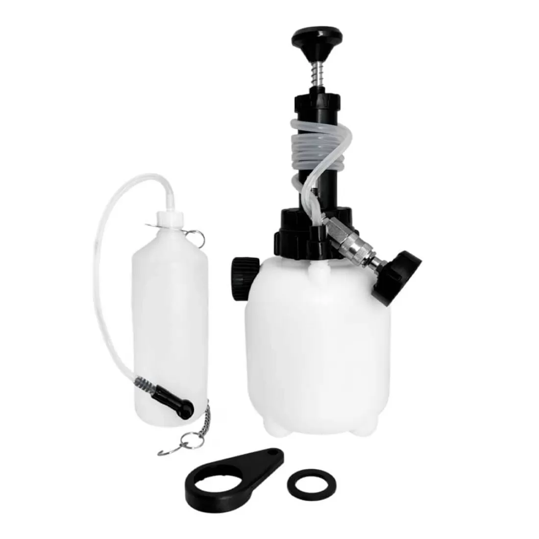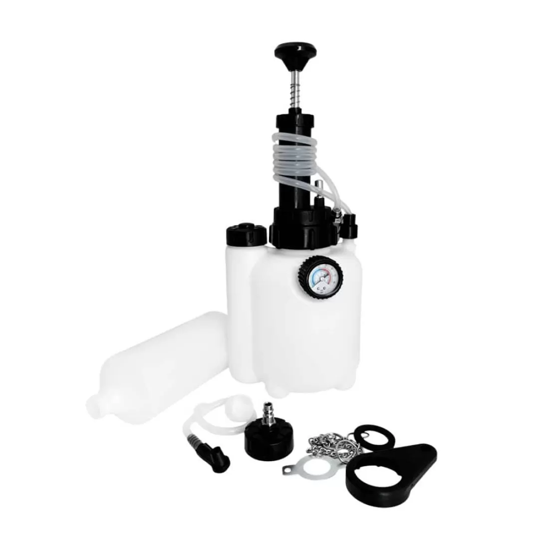 Емкости: возможна комплектация резервуаров для новой тормозной жидкости (до 3 л) и для слива старой жидкости (примерно 1 л) в зависимости от комплектации продавца.