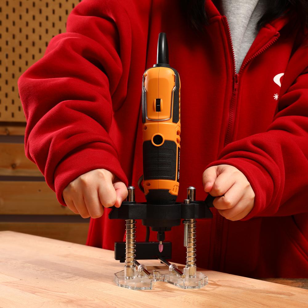 - С помощью нее инструменту можно придать функцию фрезерного станка, способного гравировать по окружности и производить декоративные кромки, фрезеровать параллельно кромке.