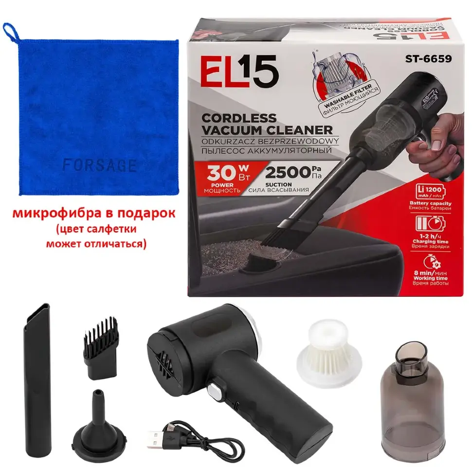 Технические характеристики: Напряжение аккумулятора: 12 В Ёмкость аккумулятора: 2,5 Ач Макс. разрежение : 5,3 кПа Макс. расход: 1,2 м3/мин Продолжительность работы: 2.5 Ач/22 мин Объем контейнера (брутто): 0,38 л Вес с аккумулятором: 1 кг Комплектация: Держатель для принадлежностей (1 619 PA9 901) Зарядное устройство AL 1115 CV 1 аккумуляторный блок PBA 12V 2.5Ah O-B Щеточная насадка (1 619 PA9 896) Щелевая насадка (1 619 PA9 897) Фильтрующий элемент (2 607 432 046) Насадка для пола (1 619 PA9 899) 2 удлинительные трубки (1 619 PA9 898) Особенности: Мощный вакуумный пылесос для уборки также более крупных или тяжелых материалов Легкий портативный и вакуумный пылесос для пола, подходящий также для мобильного использования в автомобиле или дома благодаря наличию аккумулятора Достаточное время работы от одной зарядки аккумулятора и постоянная непрерывная мощность до последней минуты работы Syneon Chip: интеллектуальная система электронного управления энергией для обеспечения оптимальной мощности и максимальной выносливости Индикатор уровня заряда аккумулятора с 3-мя светодиодами показывает уровень зарядки аккумулятора, поэтому легко определить оставшееся время работы Практичная удлинительная трубка для исключительно комфортной очистки полов Оптимально подходит для труднодоступных мест благодаря очень длинной щелевой насадке Комфортная очистка мягкой мебели с щеточной насадкой Плоский гофрированный фильтр, который легко чистить и заменять, обеспечивает высокую эффективность удаления пыли Один аккумулятор для всех - для любых садовых электроинструментов/электроинструментов для домашней мастерской из системы Power for ALL