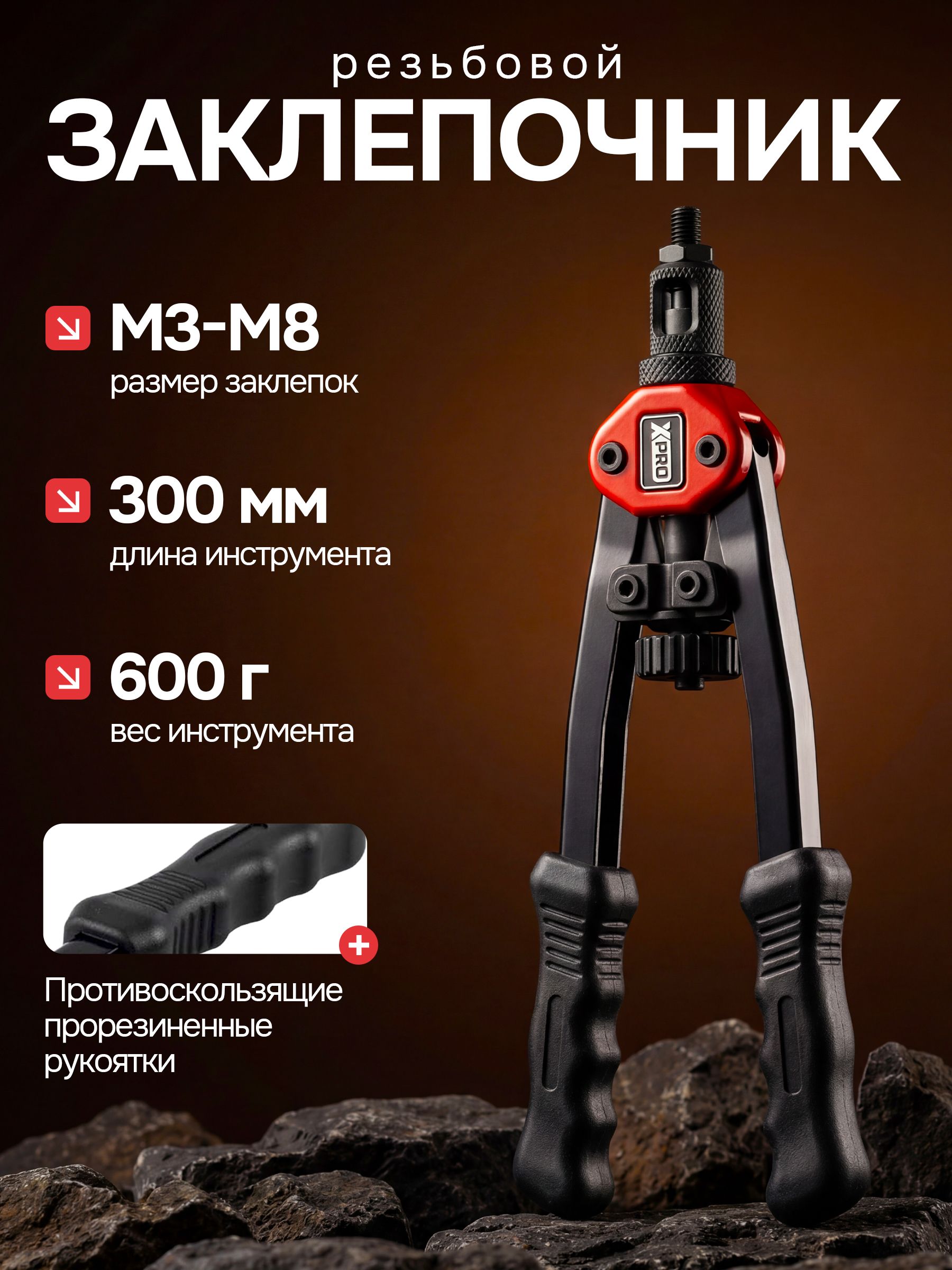 Надёжный расходный материал для профессионального монтажа! Резьбовой стержень М12 совместим с заклёпочниками XPRO, обеспечивая быструю и прочную установку резьбовых заклёпок большого диаметра. Изготовлен из высокопрочной стали с антикоррозийным покрытием, что гарантирует износостойкость даже при интенсивной нагрузке. Идеален для строительных задач, ремонта промышленного оборудования или монтажа металлоконструкций. Храните его в комплекте с инструментом — и вы всегда будете готовы к работе!