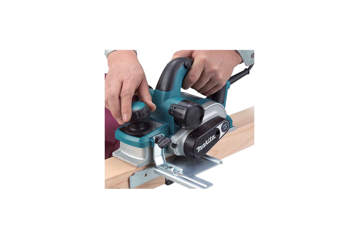 Рубанок Makita KP 0810 применяется для обработки деревянных поверхностей, для фальцовки и формирования фасок. Благодаря двойной изоляции, инструмент можно включать в незаземленную розетку. Мощность рубанка составляет 850 Вт.