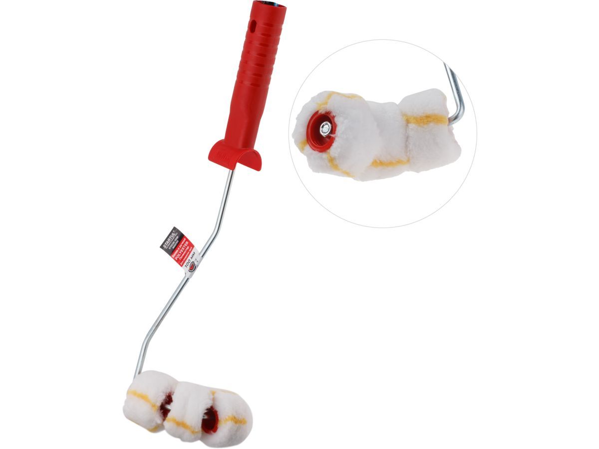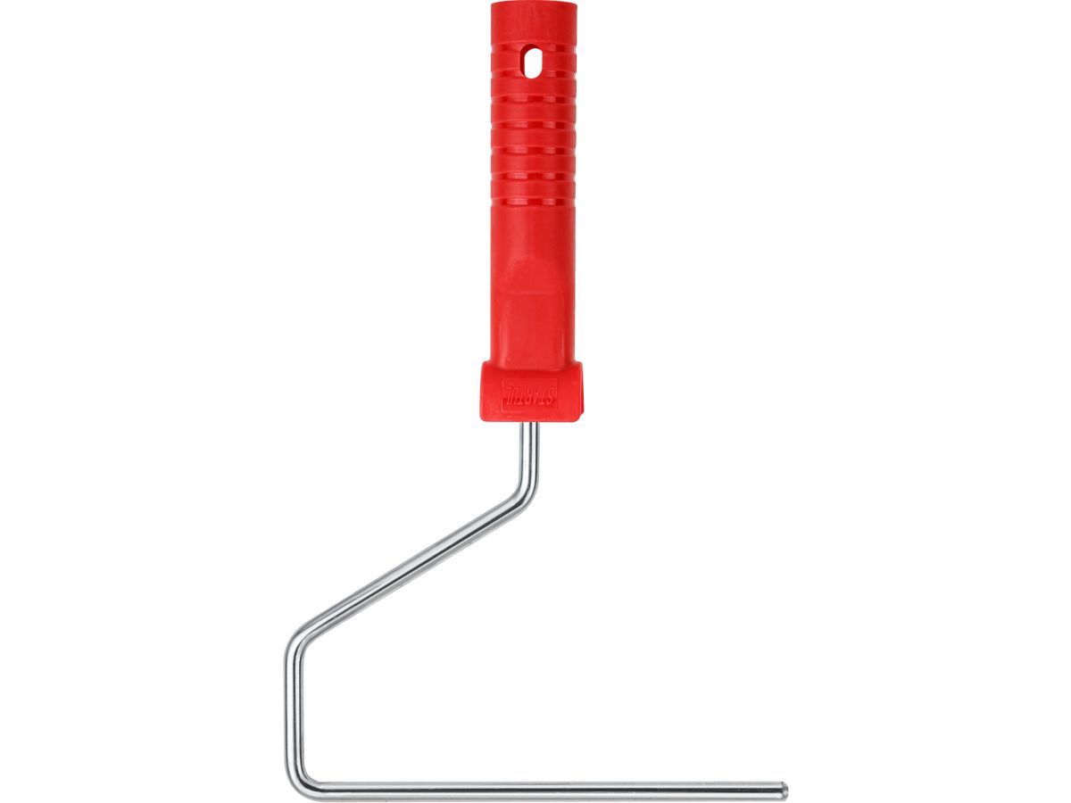 Описание: стальной изогнутый стержень, оснащенный эргономичной пластмассовой рукоятью. Технологическое отверстие в рукояти облегчает конструкцию инструмента и позволяет использовать телескопические стержни для покраски труднодоступных участков,
