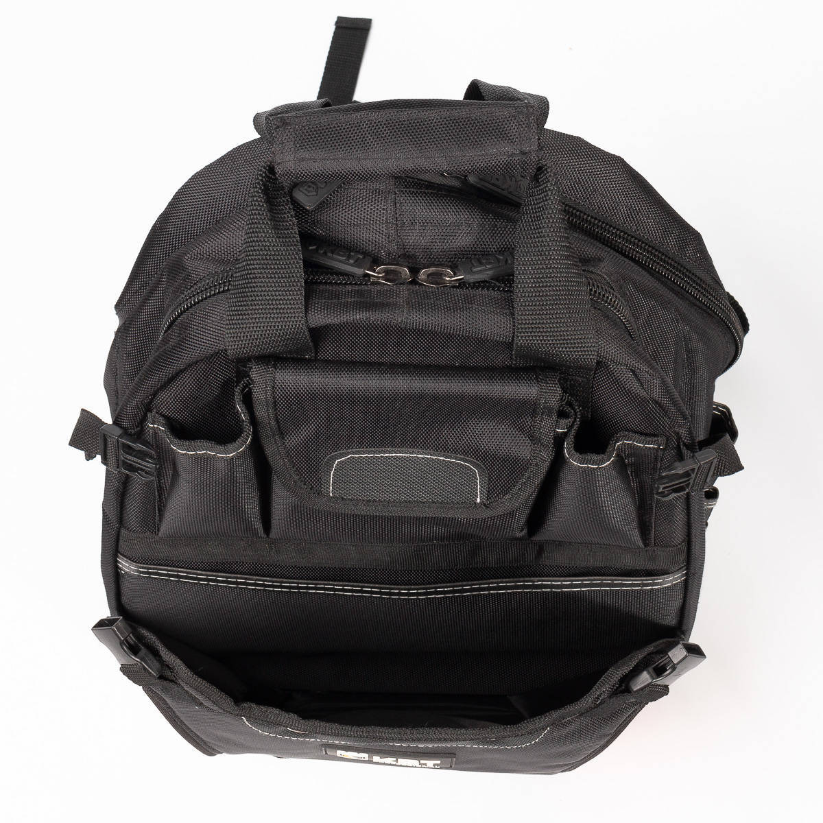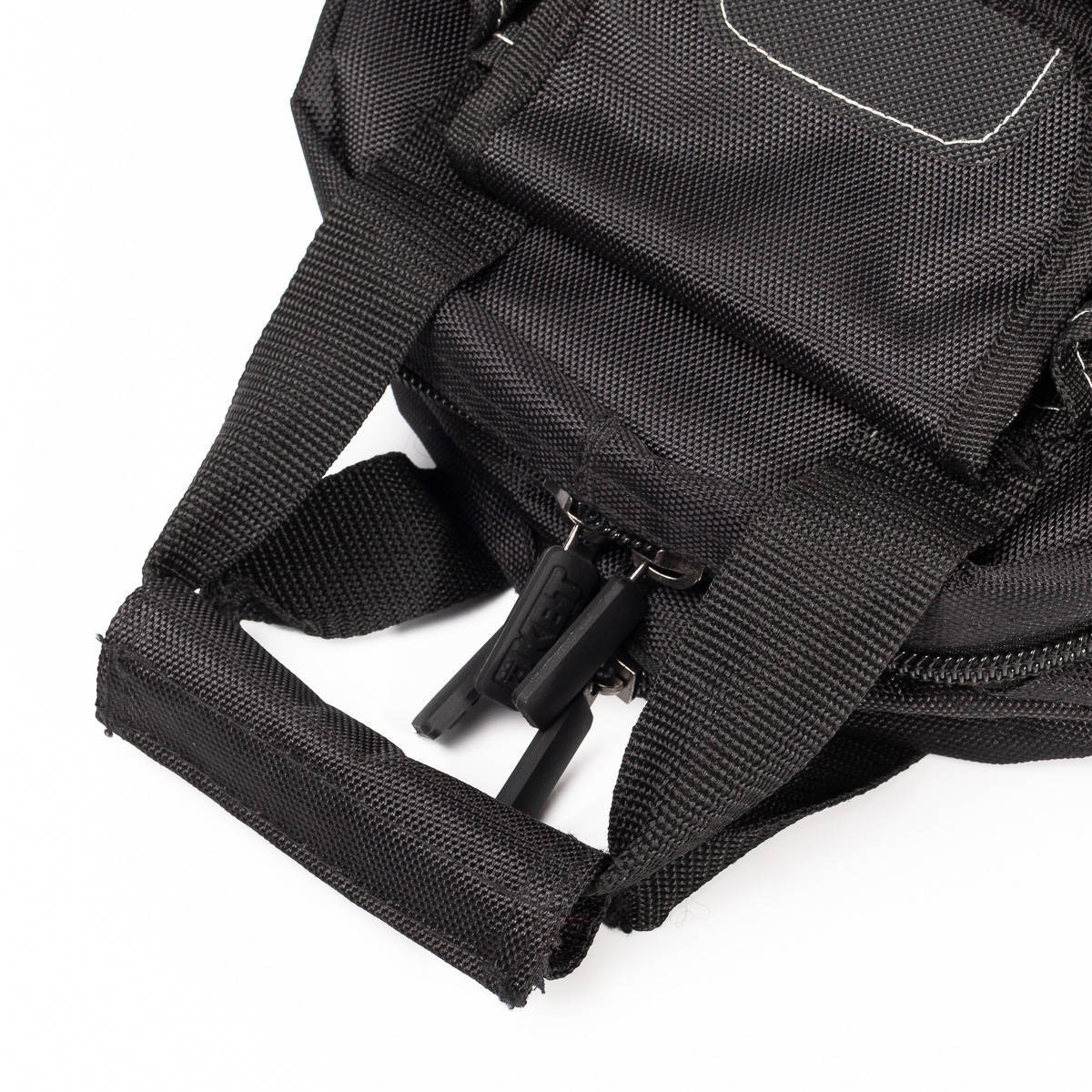 - 3 мини-кармана для узких предметов и металлический держатель для рулетки на боковых сторонах