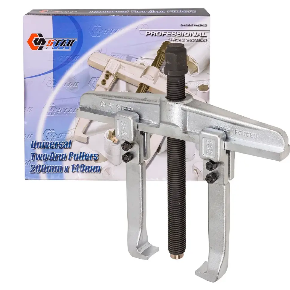 Съёмник двухзахватный переставной STAB TU20010D, 200×140 мм — надёжный инструмент для демонтажа подшипников, шкивов, втулок и других прессованных деталей. Конструкция с двумя переставными захватами позволяет адаптировать съёмник под различные диаметры и формы, обеспечивая равномерное усилие и минимальный риск повреждения деталей.