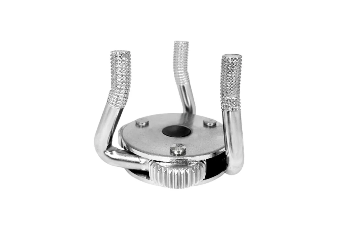 Съёмник масляного фильтра «краб» ХОРЕКС АВТО HZ 25.1.174W — трёхлапый регулировочный съёмник для демонтажа навинчивающихся масляных фильтров, предназначен для сервисов и домашнего гаража; конструкция «краб» обеспечивает равномерный захват и минимизирует деформацию корпуса фильтра.
