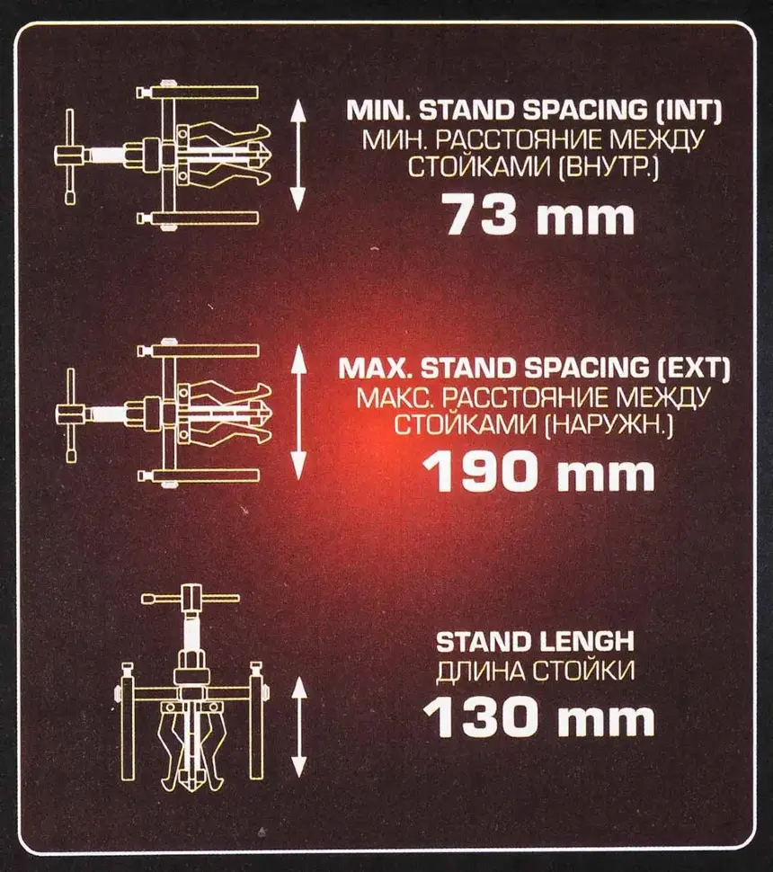 Съемник подшипников и втулок с внутренним захватом (расст. между стойками 73-190мм, длина стойки 130мм) FORCEKRAFT FK-66620