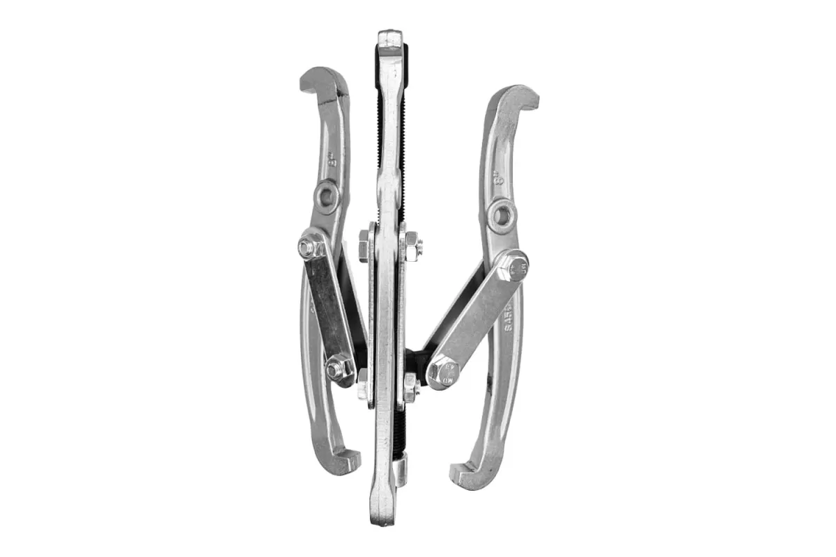 Предназначен для наружного съёма подшипников, втулок и шкивов; трёхточечный захват обеспечивает симметричное распределение усилия и минимизирует перекос при вытягивании детали.
