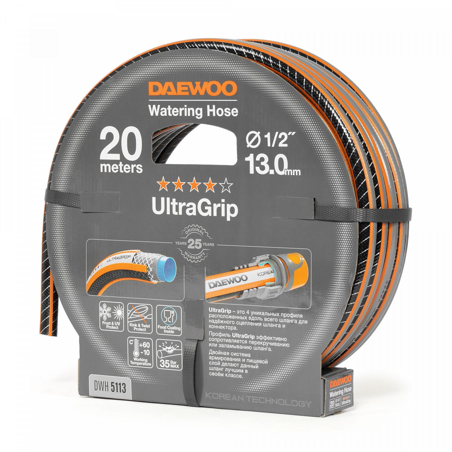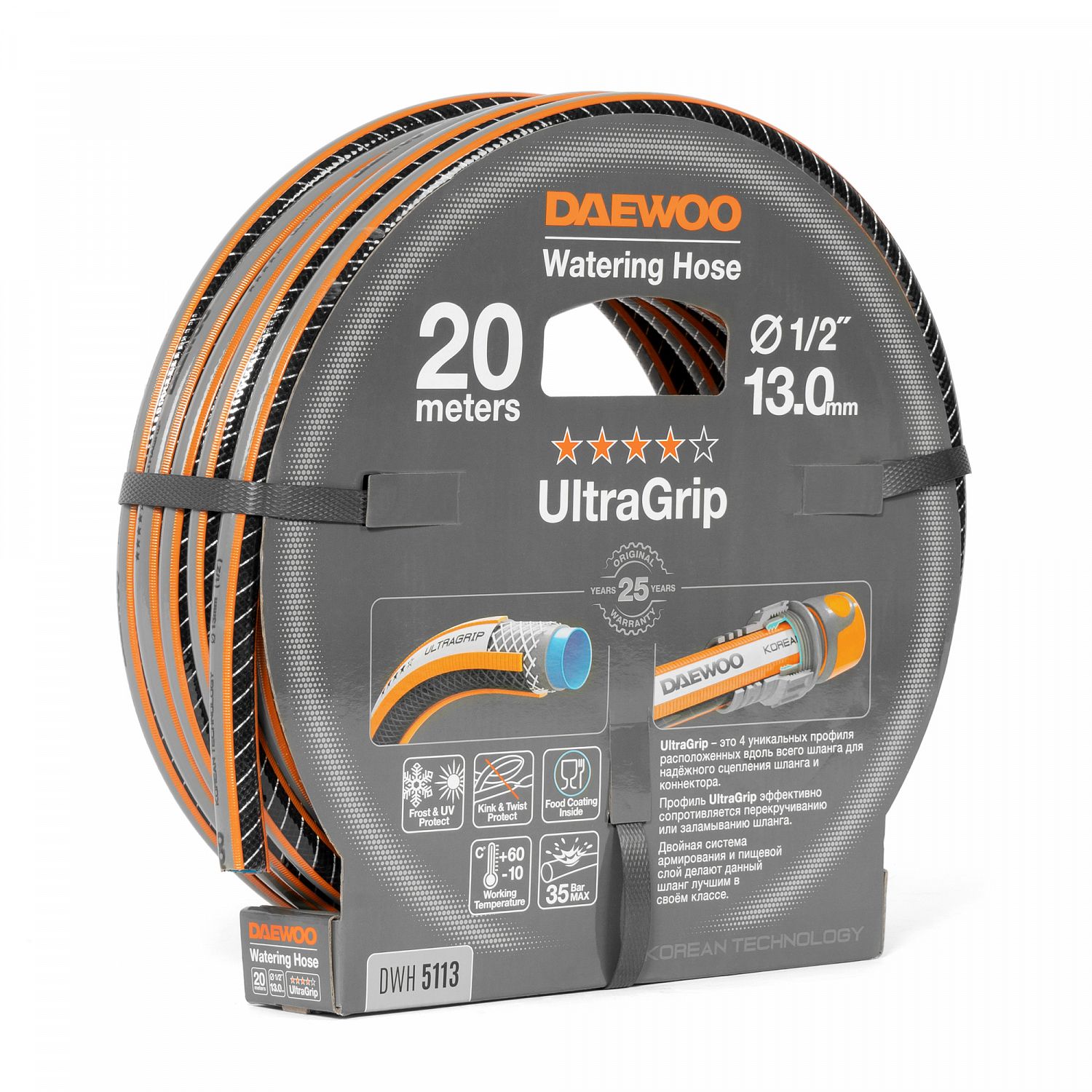 Шланг поливочный 1/2 " (13мм) DAEWOO UltraGrip 20 метров