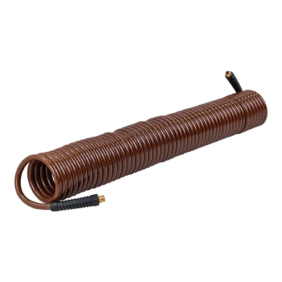 Шланг витой полиуретановый FORSTIME FT‑AHC‑48F с внутренним диаметром 8 мм, внешним диаметром 12 мм и длиной 15 м предназначен для подачи сжатого воздуха от компрессора к пневматическому инструменту. Изготовлен из полиуретана, который сочетает высокую гибкость, износостойкость и устойчивость к перегибам. Спиральная форма облегчает хранение, предотвращает запутывание и повышает удобство эксплуатации. Резьбовые штуцеры 1/4″ (внешняя резьба) обеспечивают надёжное и герметичное соединение с пневмосистемой.
