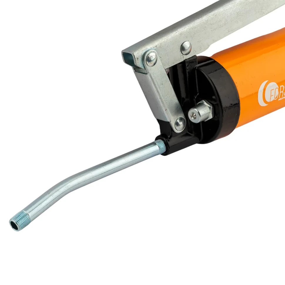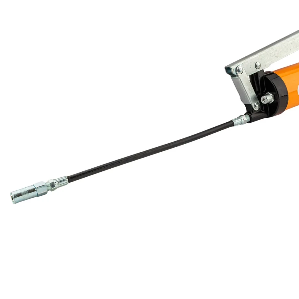Шприц для нагнетания густой смазки FORSTIME объёмом 500 мл предназначен для обслуживания и смазывания узлов трения в автомобилях, сельскохозяйственной, строительной и промышленной технике. В комплектацию входит: сам шприц для нагнетания смазки, гибкий шланг ПВХ длиной 12 дюймов для доступа к труднодоступным местам, стальная трубка длиной 5 дюймов для жёсткого подключения и сменный наконечник для точного нанесения смазки. Инструмент обеспечивает удобное и дозированное нанесение консистентных смазок на подшипники, шарниры, направляющие и другие детали, требующие регулярного ухода. Шприц подходит для профессионального использования в автосервисах, мастерских, а также для бытового применения при ремонте и техническом обслуживании оборудования.