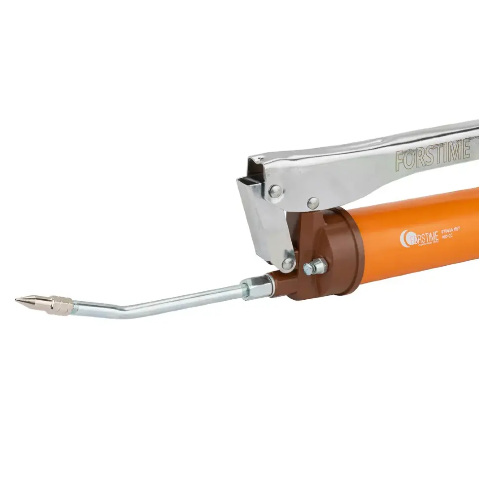 Шприц для нагнетания густой смазки 900 мл FORSTIME FT‑07043A MST — ручной инструмент для подачи густых смазочных материалов в подшипники, шарниры и другие узлы трения. Используется в автосервисах, мастерских и при обслуживании техники, где требуется точное и дозированное нанесение смазки.