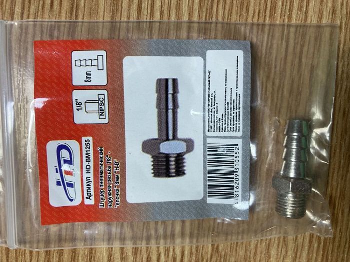 Штуцер пневматический наружная резьба 1/8" - "елочка" 8мм H-D HD-BM1255