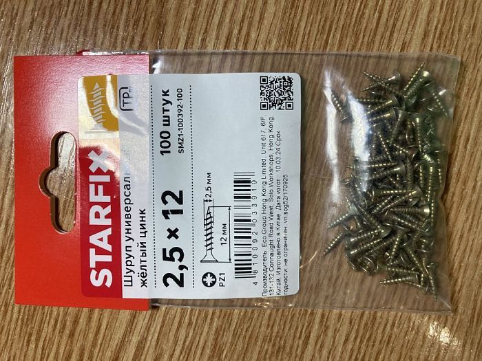 Шуруп универсальный 2.5х12 мм желтый цинк, 100 шт, STARFIX SMZ1-100392-100