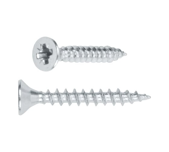 Используется для крепления различных конструкций к дереву, фанере, ДСП. Шуруп имеет потайную головку с крестообразным шлицем (PZ) и острый наконечник.