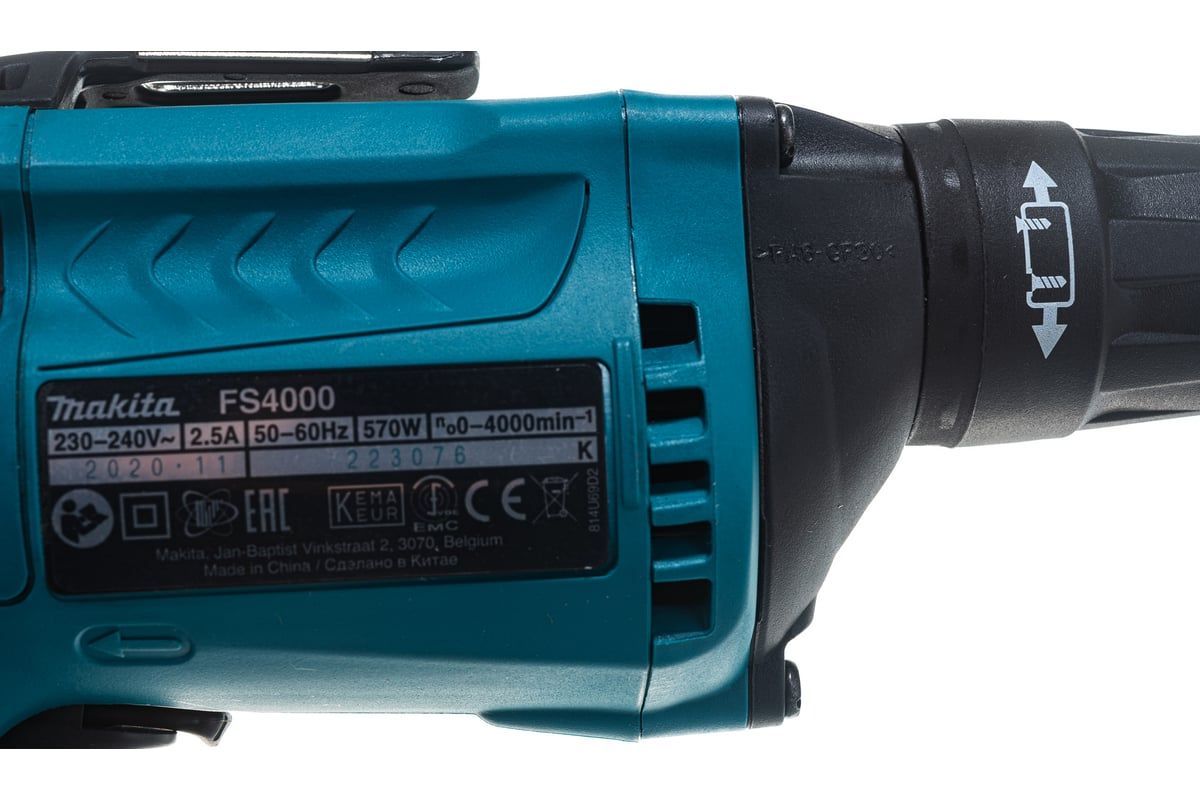 Шуруповерт электрический FS4000 по гипсокартону, 1/4",570Вт, 4000 об.мин, MAKITA FS4000