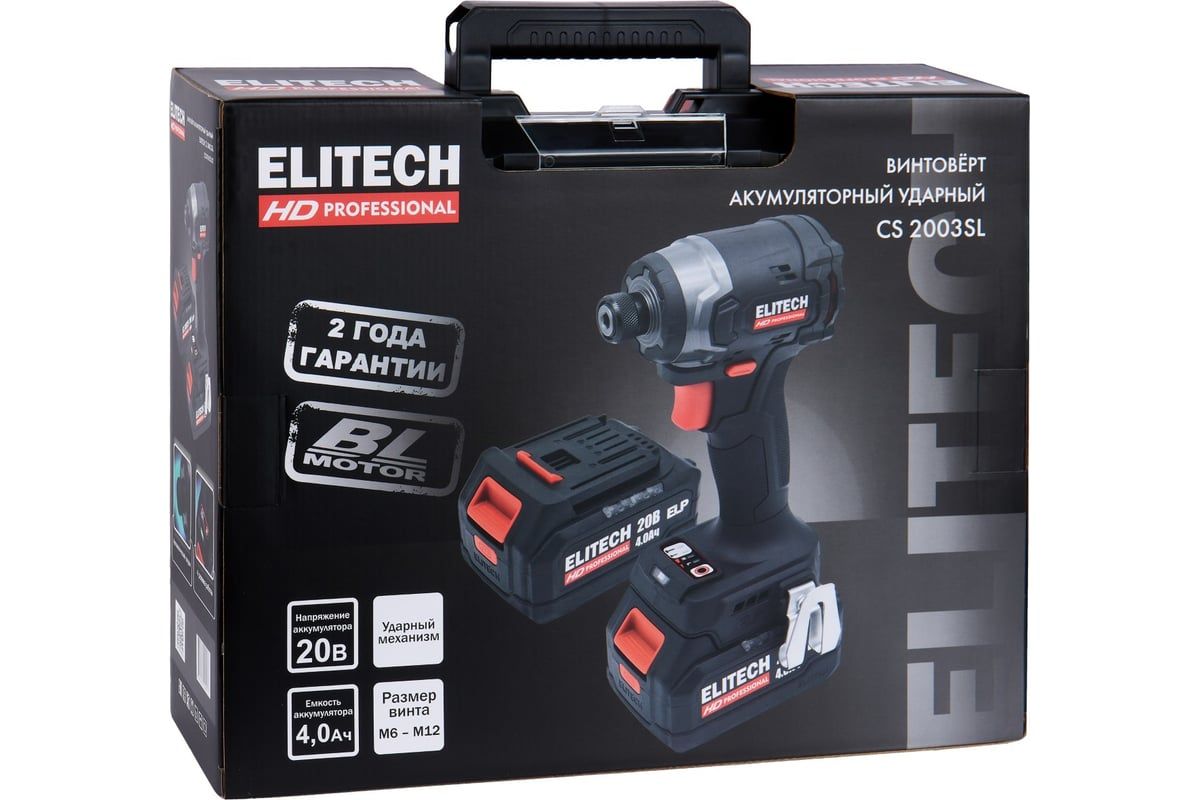Шуруповерт ударный CS 2003SL аккумуляторный ,HD , 20В, 2АКБ 4,0 А/ч, 260Нм, BL ,кейс, ELITECH 205733
