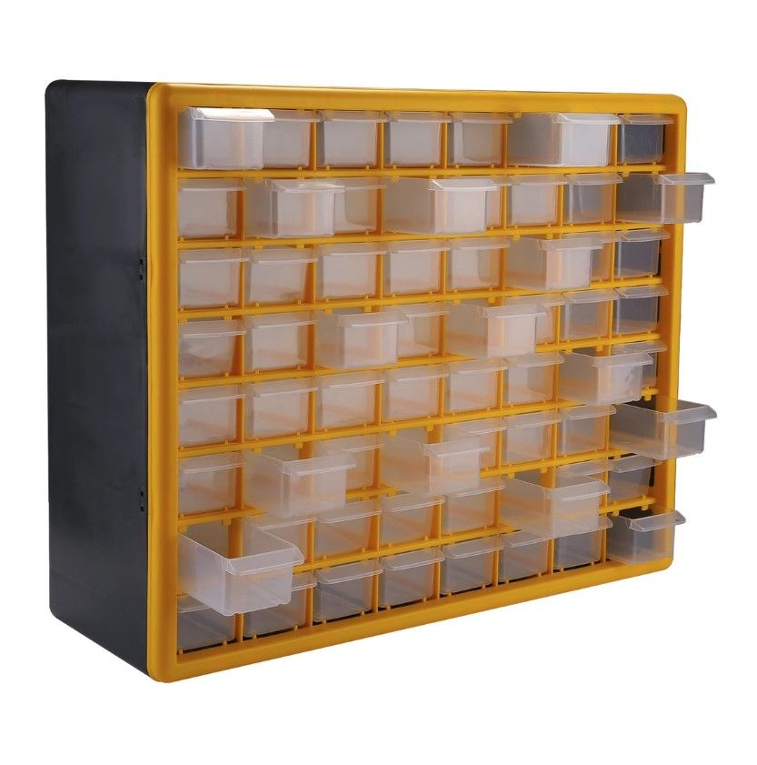 - Система хранения DEKO DKTB15 представляет собой удобный контейнер с 64 ячейками для хранения инструментов и аксессуаров.