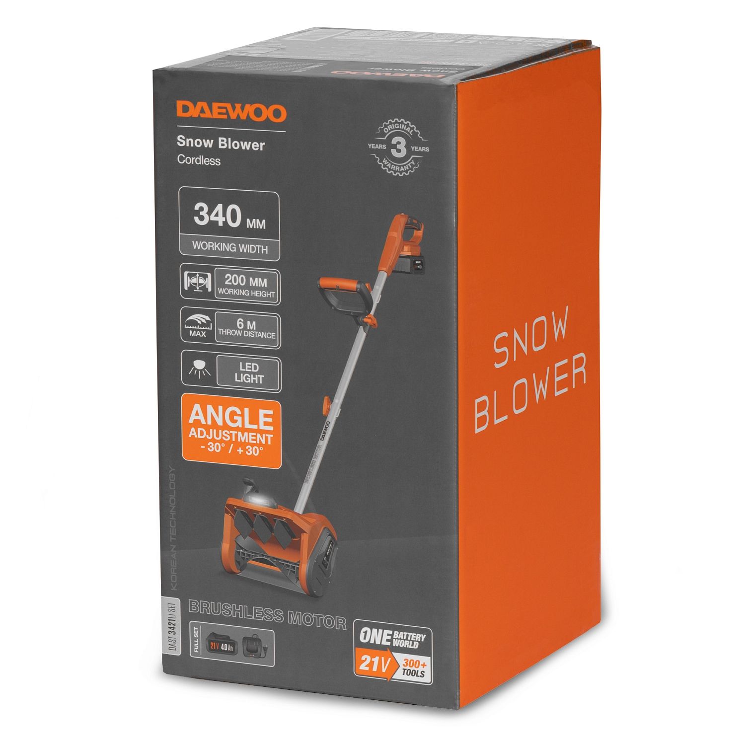 Снегоуборщик аккумуляторный , 21В, 1АКБ 4,0 А/ч, DAEWOO DAST 3421Li SET