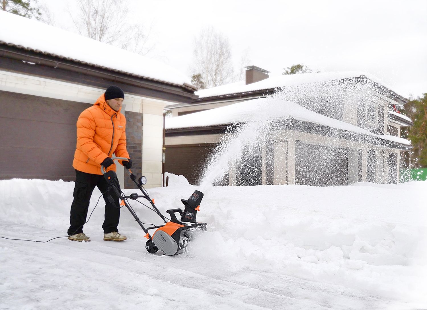 ✔ Изменение угла выброса до 190˚. При помощи удобной рукоятки можно быстро изменять направление выброса снега, что позволяет максимально комфортно и быстро очистить территорию.