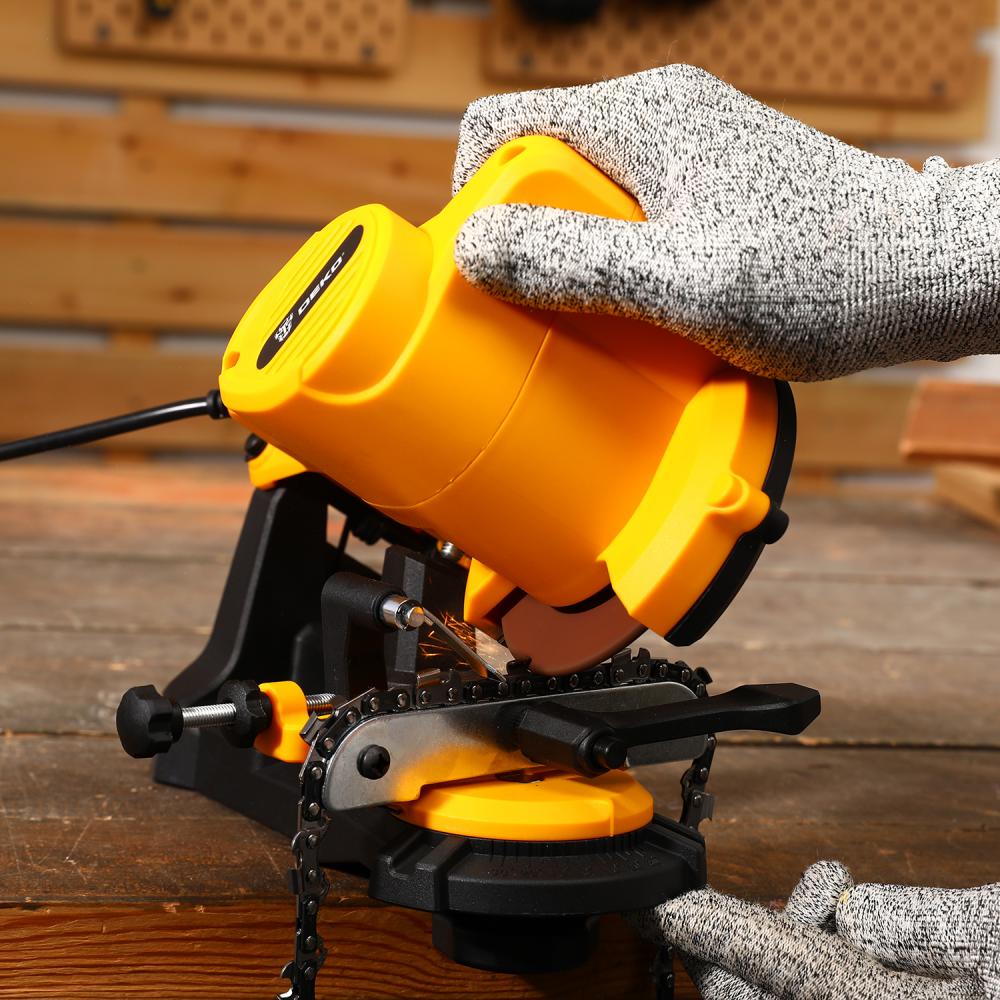 - Станок заточной DEKO DKGM220 предназначен для заточки цепей бензиновых или электрических пил с разным шагом цепи.