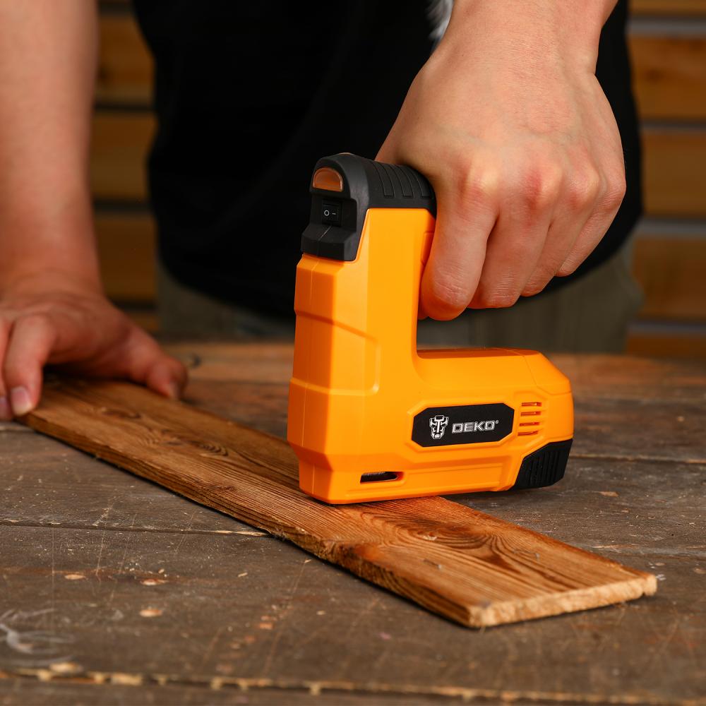 - Степлер аккумуляторный DEKO DKES3.6 предназначен для крепления тонких деревянных деталей, деталей из масонита или других материалов, требующих надежной фиксации.