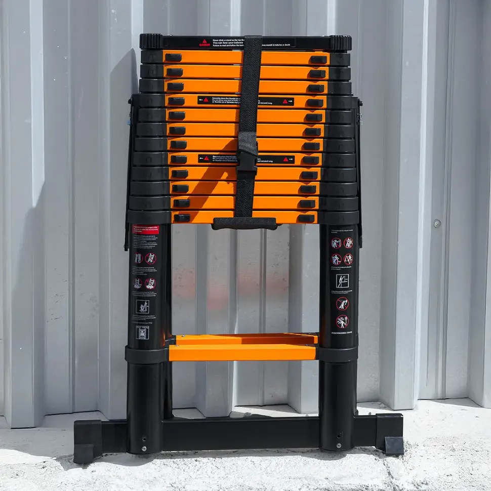 Конструкция изготовлена из прочного алюминиевого сплава с антикоррозионным покрытием, что гарантирует легкий вес, устойчивость к воздействию влаги и длительный срок службы. Телескопическая система позволяет быстро разложить лестницу до нужной высоты и надежно зафиксировать все секции.