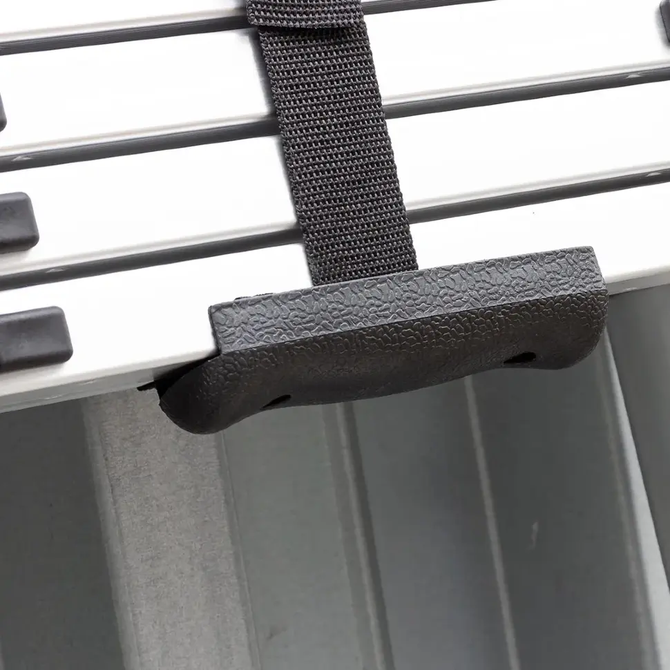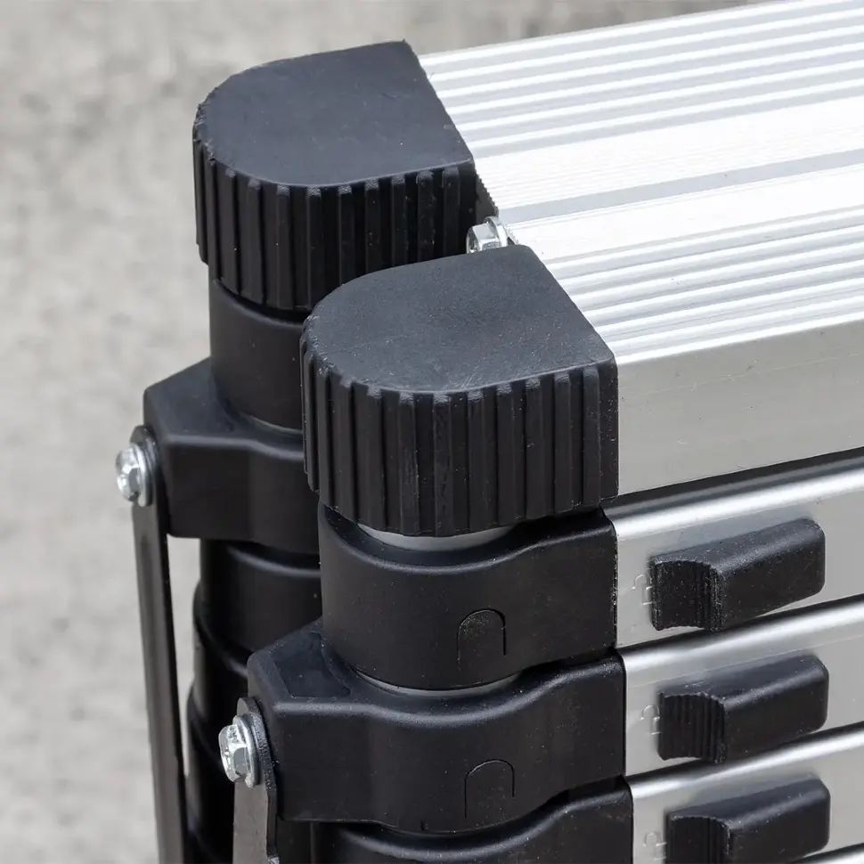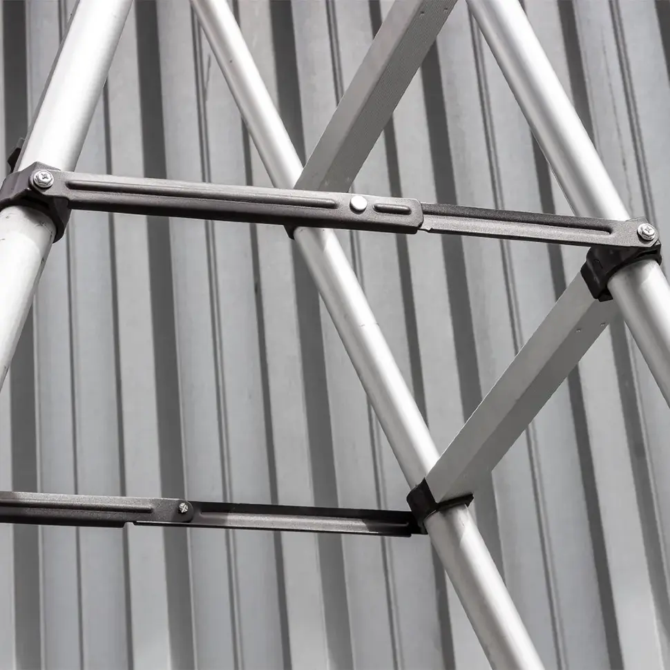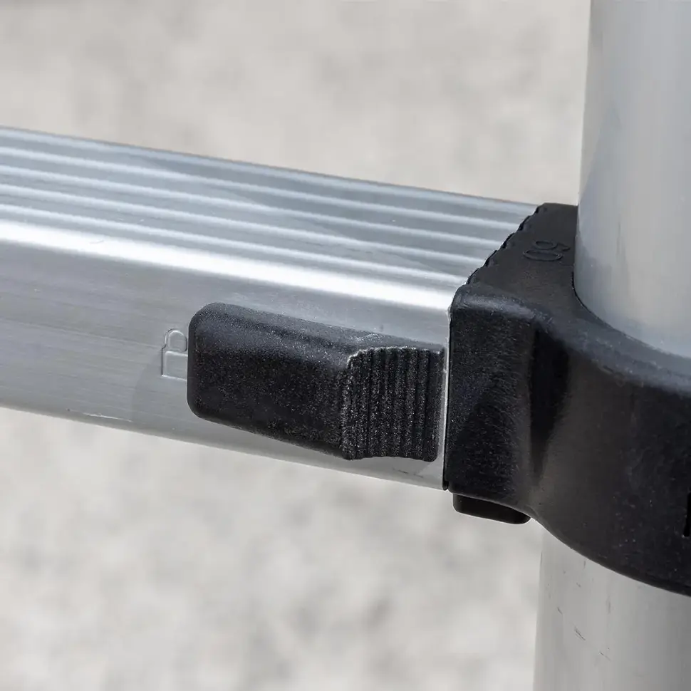 - Безопасность: надёжная фиксация ступеней, широкие рифлёные ступени и противоскользящие наконечники.