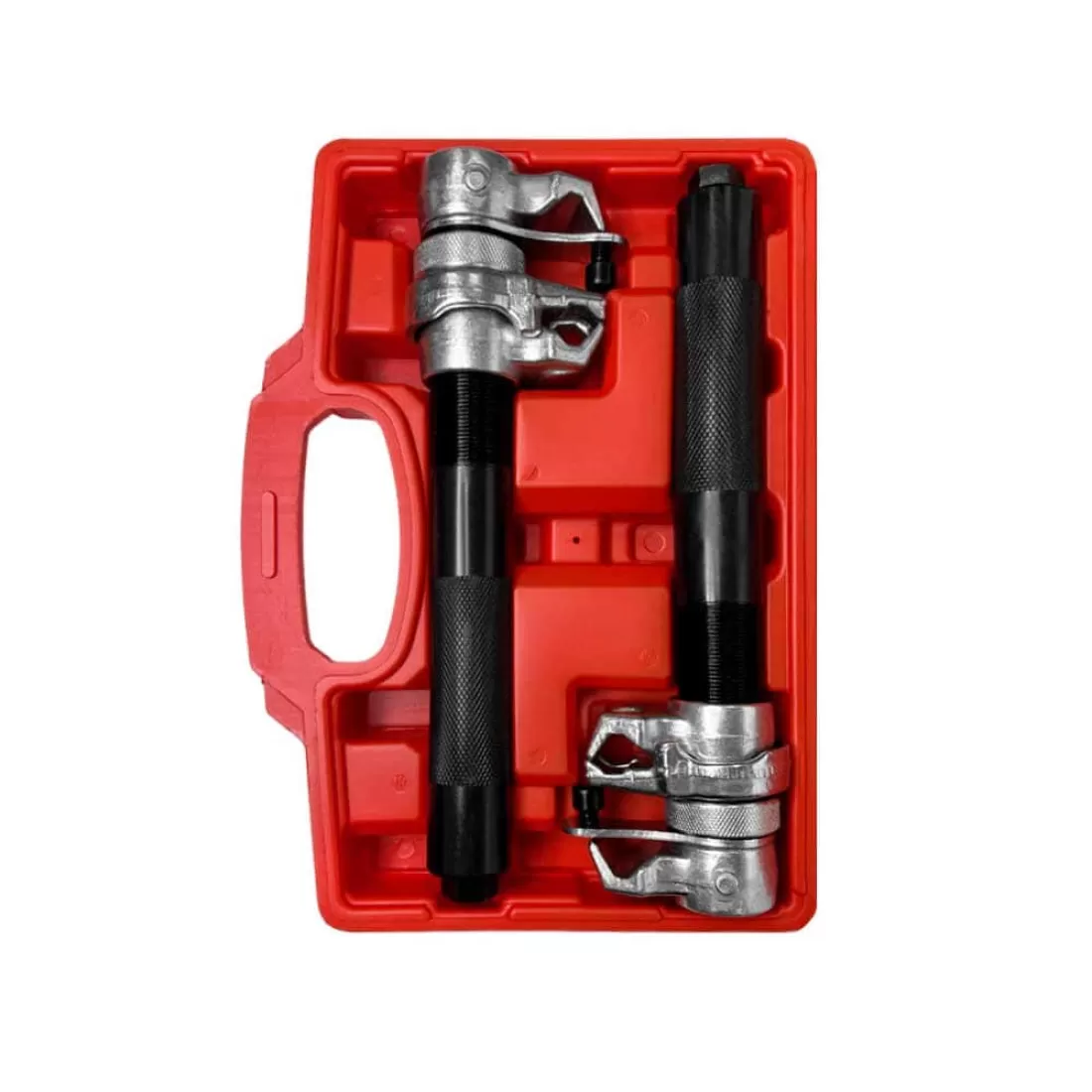 Комплект удобно хранить и перевозить, подходит для выездных бригад и мелких сервисов; стяжки фиксируются на витках, обеспечивая центральный захват и контроль сжатия.