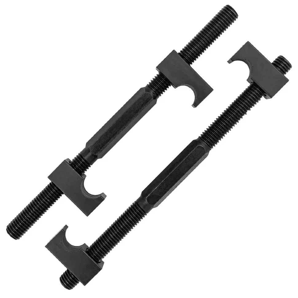 Изготовлены из прочной стали, устойчивой к высоким нагрузкам и износу. Однозахватная конструкция обеспечивает надёжную фиксацию пружины и минимизирует риск её соскальзывания во время работы. Длина 230 мм позволяет использовать стяжки в различных условиях, включая ограниченное пространство. Комплект поставляется в упаковке, удобной для хранения и транспортировки.
