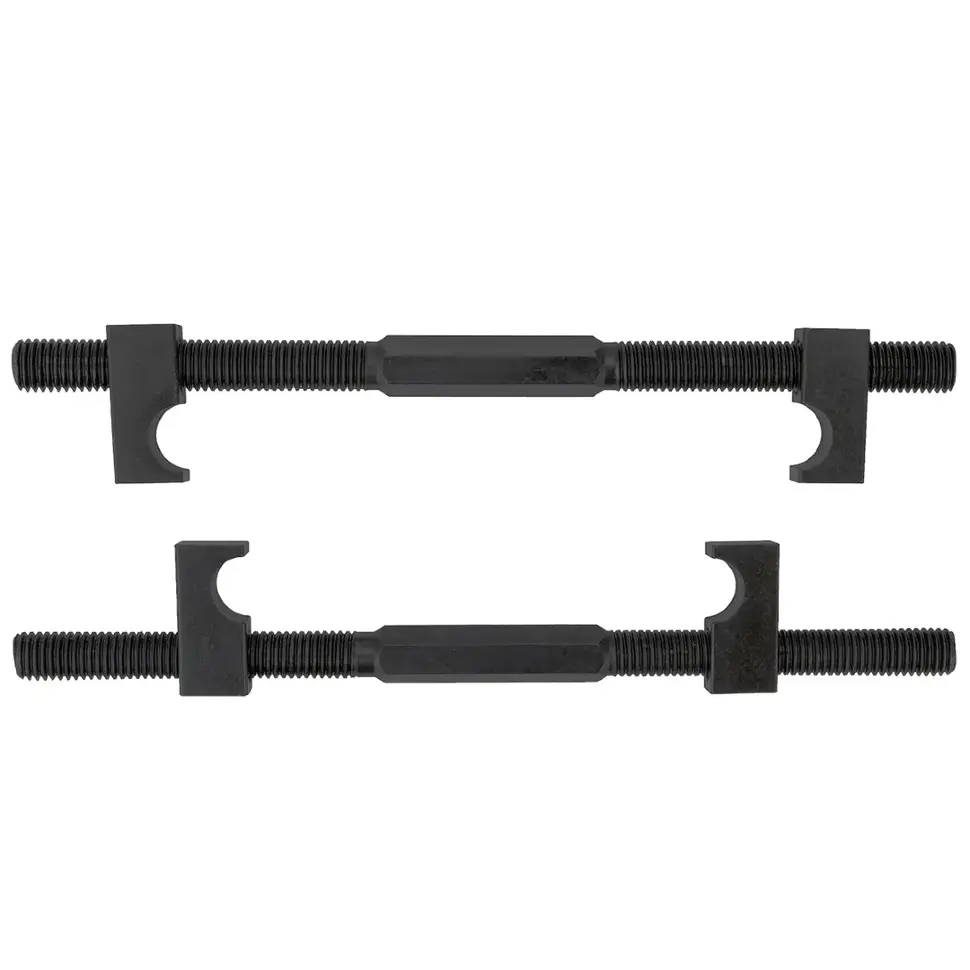 Изготовлены из прочной стали, устойчивой к высоким нагрузкам и износу. Однозахватная конструкция обеспечивает надёжную фиксацию пружины и минимизирует риск её соскальзывания во время работы. Длина 250 мм позволяет использовать стяжки в различных условиях, включая ограниченное пространство. Комплект поставляется в упаковке, удобной для хранения и транспортировки.