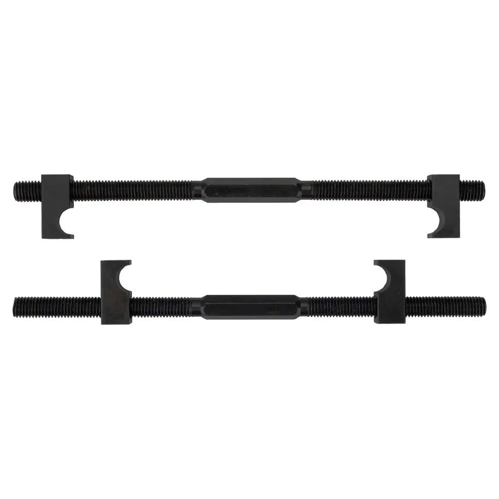 Изготовлены из прочной стали, устойчивой к высоким нагрузкам и износу. Однозахватная конструкция обеспечивает надёжную фиксацию пружины и снижает риск её соскальзывания во время работы. Длина 300 мм позволяет работать с большинством типов пружин легковых автомобилей, включая труднодоступные места. Комплект поставляется в удобной упаковке для хранения и транспортировки.