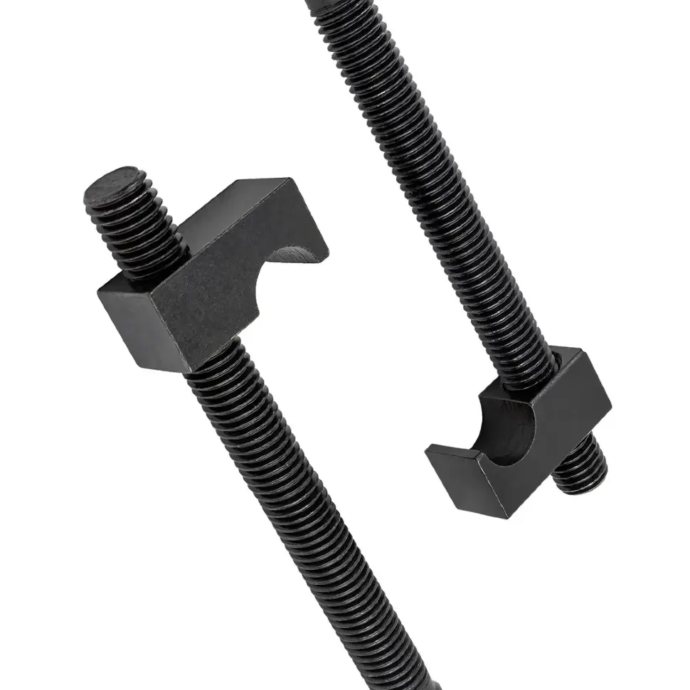 Изготовлены из прочной стали, устойчивой к высоким нагрузкам и износу. Конструкция с одним захватом обеспечивает надёжное удержание пружины и минимизирует риск её соскальзывания во время работы. Длина 330 мм позволяет применять стяжки в различных условиях, включая ограниченное пространство. Комплект не требует специального кейса и поставляется в удобной упаковке для хранения и транспортировки.