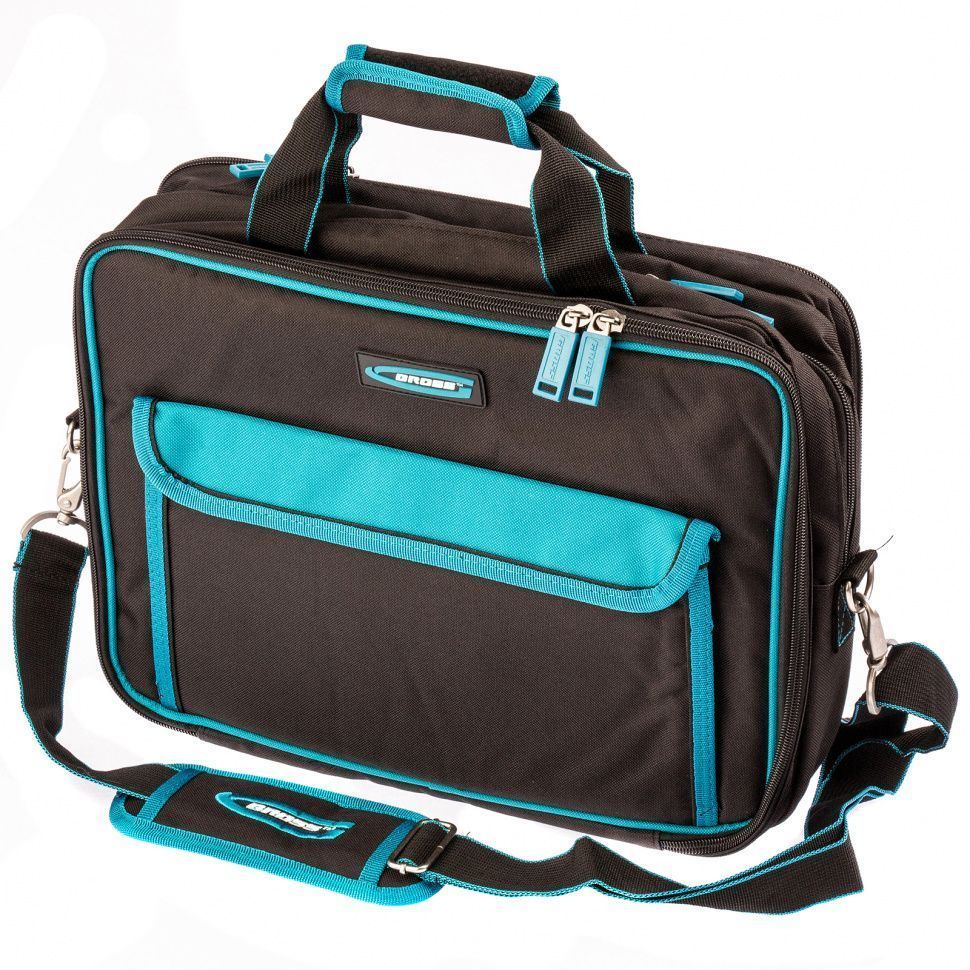 Сумка Gross Meister 90271, 400 х 170 х 300 мм, 31 карман, с отсеком для ноутбука и наплечным ремнем, удобна для переноски и хранения ручных инструментов. Подойдет мастерам по ремонту техники, слесарям, электрикам. Сумку можно брать в офис — в ней помещается ноутбук диагональю до 15 дюймов и бумаги формата А4. В сумке 31 карман и удобные фиксирующие резинки, поэтому каждый инструмент в ней всегда на своем месте.