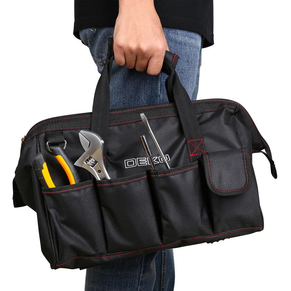 - Объёмная сумка Deko для инструментов L идеально подходит для хранения и переноски инструментов.